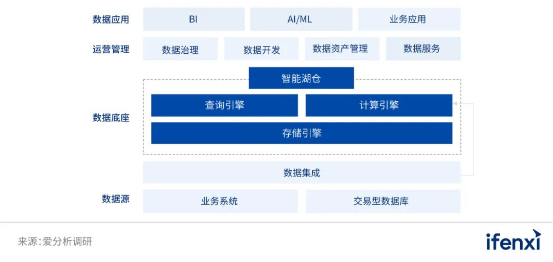 在此后近30年的演进中,分析型数据库先后出现了共享存储架构数仓、大规模并行处理(MPP)架构数据仓库以及数据湖等技术架构。近年来,随着企业数据分析需求的不断提升,具有流批一体和存算分离,能通过元数据层在数据湖上实现数据管理功能的智能湖仓受到了更多关注,分析型数据库迎来新阶段—智能湖仓。伴随企业数字化转型战略深入推进,分析型数据库内涵也在不断扩展,我们认为当下的分析型数据库是指为应对企业管理、业务、数据分析师、数据科学家等人员对数据的各类分析和应用需求而提供的各类数据存储和计算引擎,包括传统数据仓库、云数据仓库、数据湖等,以及目前正在兴起的智能湖仓。
