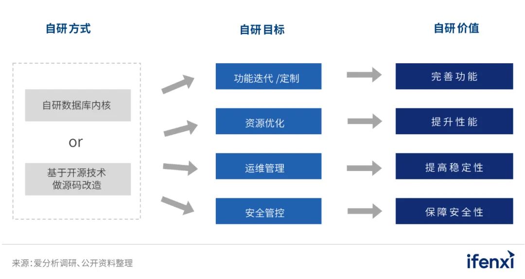 自研能力较强的厂商能够掌握分析型数据库的核心代码,从而在数据库的功能迭代和管理运维方面提供原厂级服务,具备较强的竞争优势。厂商掌握核心代码可以从源头解决软件的核心问题,一方面,厂商因此可以主导产品的功能迭代,并针对不同客户的个性化需求做定制化功能;另一方面,厂商可以在网络存储计算资源、安全管控等方面做更深的优化,提供原厂级的数据库管理运维工具,以提升数据库的性能,并使得数据库具备更高的稳定性和安全性。