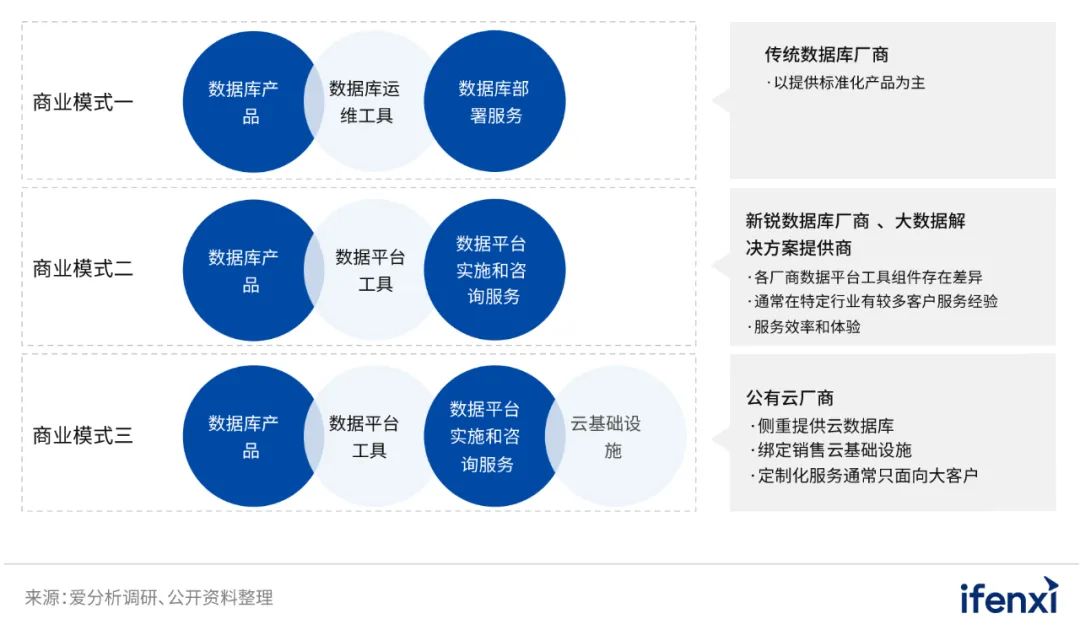 商业模式层面,国外厂商以提供数据库产品为主,而在国内市场,由于企业的数字基础建设整体上较落后,企业通常需要厂商提供出数据库产品之外,搭建数据平台所需的工具组件,以及相关实施和咨询服务。