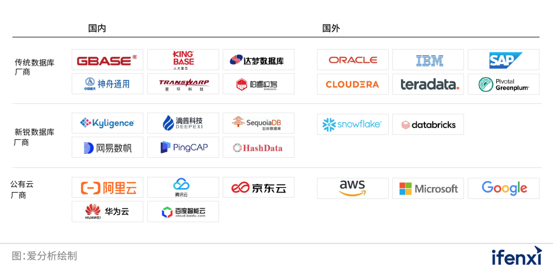 图13:国内外分析型数据库市场代表厂商
