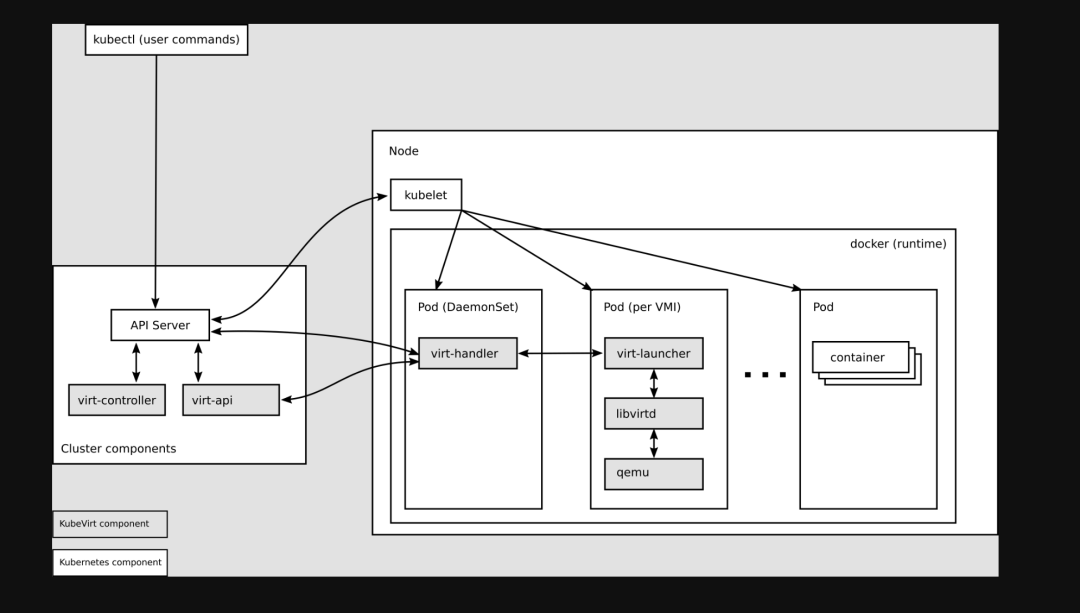 kubevirt是以CRD形式去管理vm pod, virt-api 就是所有虚拟化操作的入口,包括常规的 CRD 更新验证以及vm start、stop