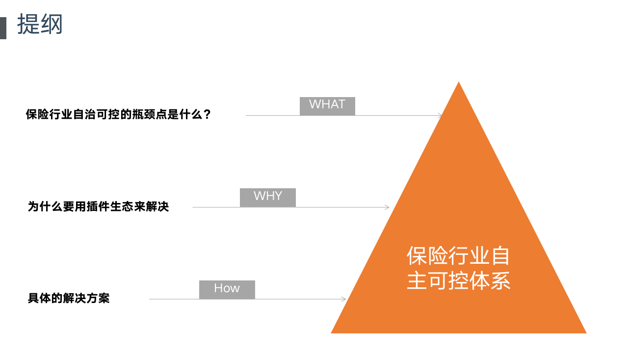 同时,对插件生态和保险公司的具体需求进行了有效地梳理。并跟保险公司信息部部门构建了5个方案构想。