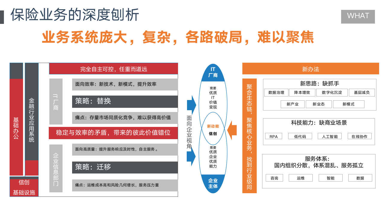 大家都很清楚,保险行业要想彻底解决自主可控,最大的瓶颈点,在于企业内,复杂的应用系统度和庞大的信息化体系,尤其是财务业务领域。