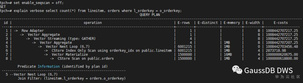 select l_orderkey, o_custkey from lineitem, orders where l_orderkey = o_orderkey;lineitem分布键是l_orderkey,并且在l_orderkey上有index,orders分布键是o_orderkey。默认情况下,Scan的方式如下: