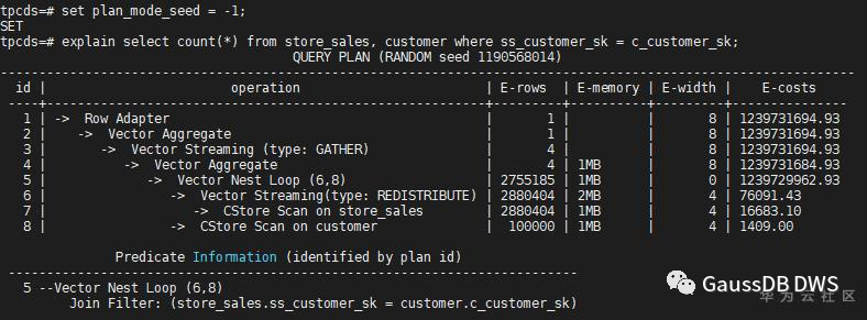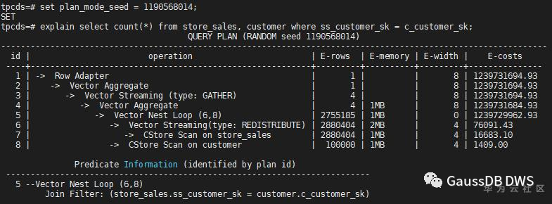 Plan中的RANDOM seed是1190568014,由优化器随机指定的,我们设置随机种子为这个数,再执行一次计划,二者计划是一样的:
