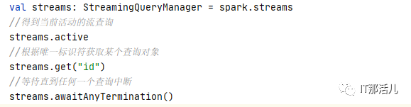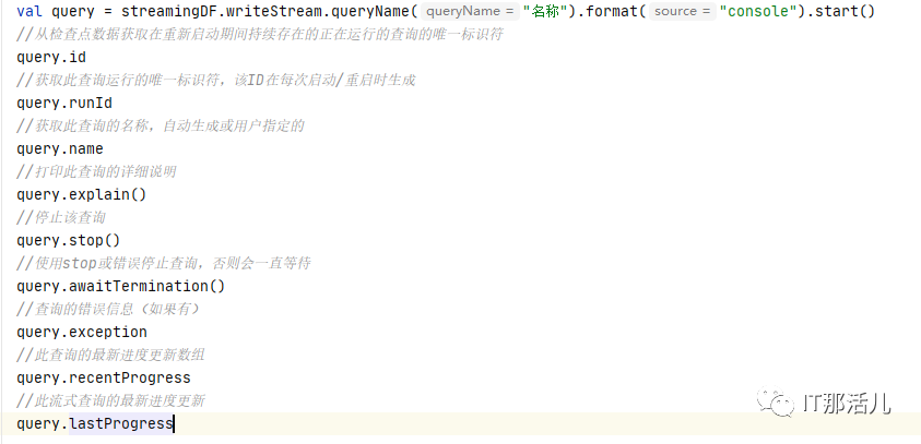 调用start()方法后将生成StreamingQuery对象,可用于监视可管理流查询。