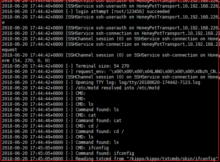 这些记录是 kippo 记录下来的Log生成的,真实的Log内容如下: