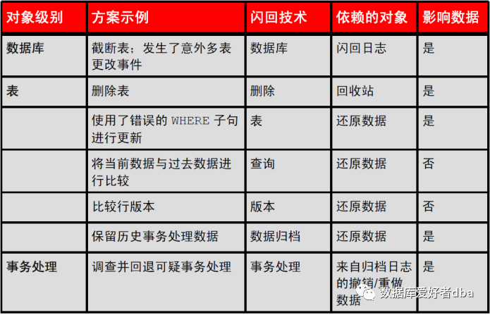 至此,闪回数据库,闪回表数据,闪回drop就已经分享完成了。在实际的生产数据库系统中,闪回数据库通常适用于数据库升级和压力测试,针对的整个数据库系统的闪回还原,影响的是整个数据库系统。
