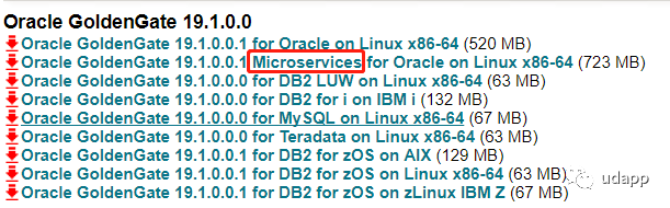 从OGG 12.3开始,传统架构与微服务架构软件是独立下载,其中软件包名字中包括Microservices字样就是新架构软件包.本次安装环境是19版本。下载地址:https://www.oracle.com/technetwork/middleware/goldengate/downloads/index.html