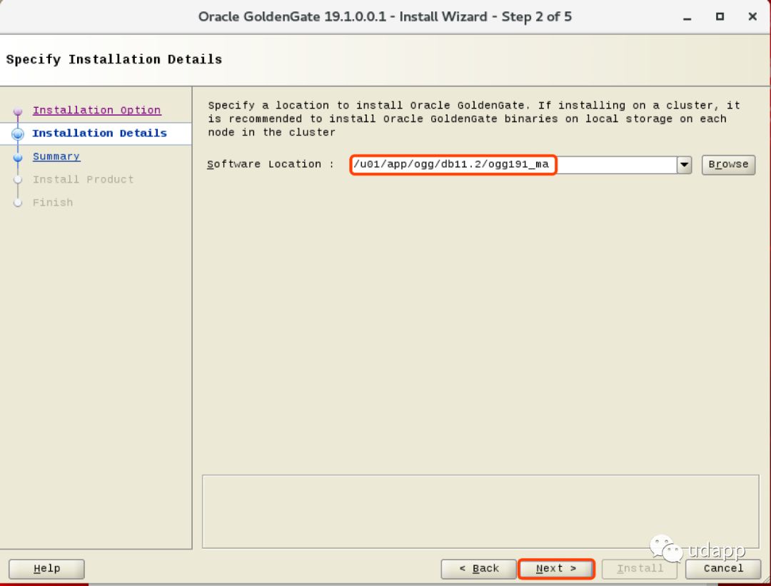 4.2 输入OGG安装路径:/u01/app/ogg/db11.2/ogg191_ma