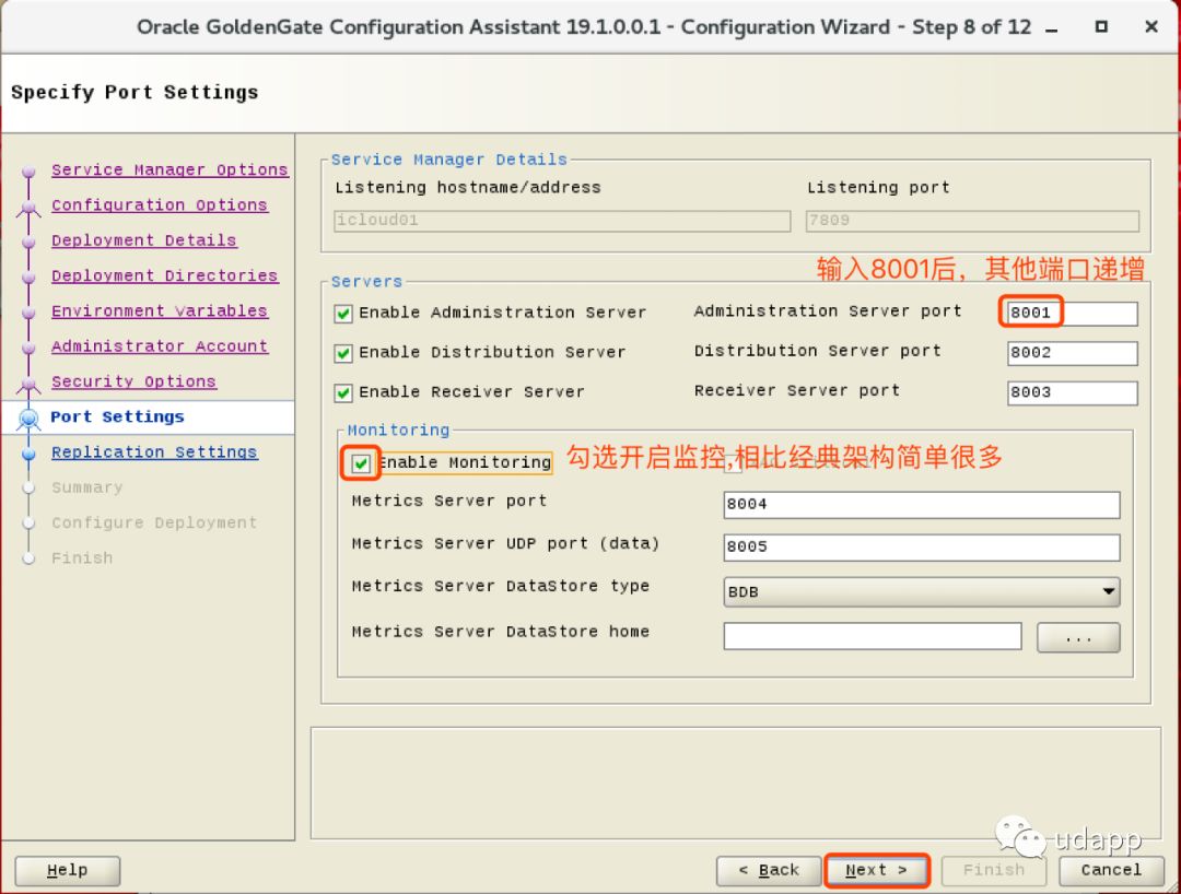 2.7 输入SERVER端口,并开启监控,其中Distribution是pump process,Receiver Server是Collect Server,只是换名字了,监控勾选就能实现,so easy,