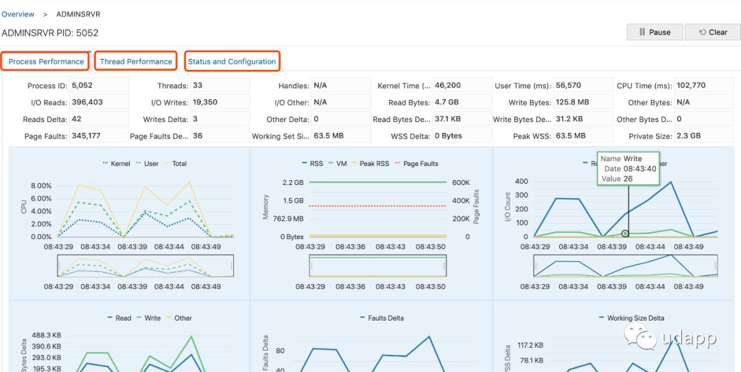 Performance metrics server:性能监控,这个里面信息非常多,例如ADMINSRVR包括进程性能,线程性能以及进程状态与配置,非常详细与直观。