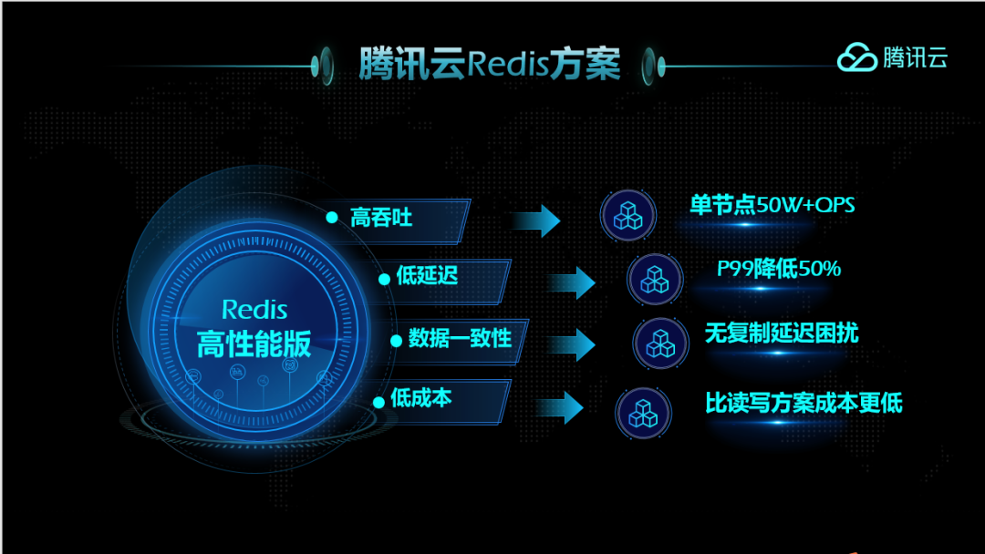 2022年6月,腾讯云Redis全新升级,发布高性能版本,单节点可提供50W+吞吐,性能是原生Redis的4倍。同时,腾讯云Redis推出全球复制功能,解决原生Redis诸多痛点问题,可用性升级高达99.999%,助力企业实现降本增效。