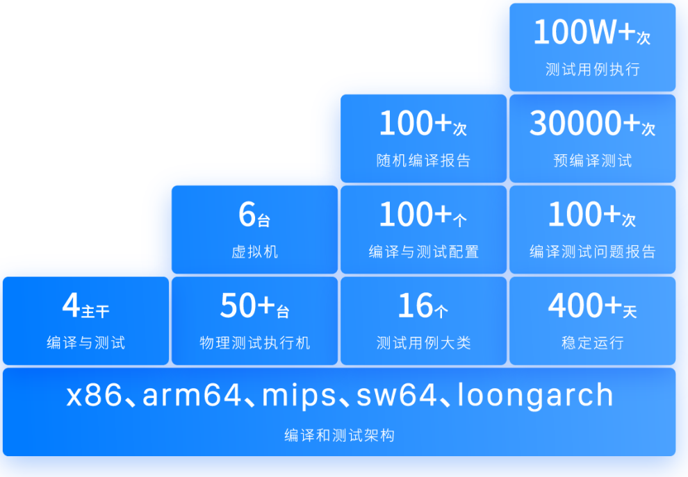 目前,在麒麟软件K2CI平台中,已涵盖6家国产CPU架构平台;其中20多个国产整机厂商的设备已纳入K2CI平台开展测试验证,在内核开发阶段采用K2CI-PT平台进行daily测试、功能测试等,在发行版出库前采用K2CI-server平台进行功能性测试、稳定性测试、性能测试等;持续守护内核产品质量,为内核提供质量保障。另外,通过K2CI工具链周期性的问题反馈,能及时解决问题并同步内部代码仓库,极大提高了内核产品的健壮性,同时也强化了麒麟软件对操作系统上游社区补丁修复的推进。