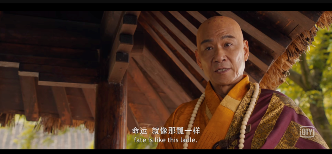 “施主,命运就像那瓢一样,触着即转。上天与我们就是那执瓢的手,要是悟到生死轮回,无非花开花落。心有定境,不住因果,还有什么不快乐的呢?”