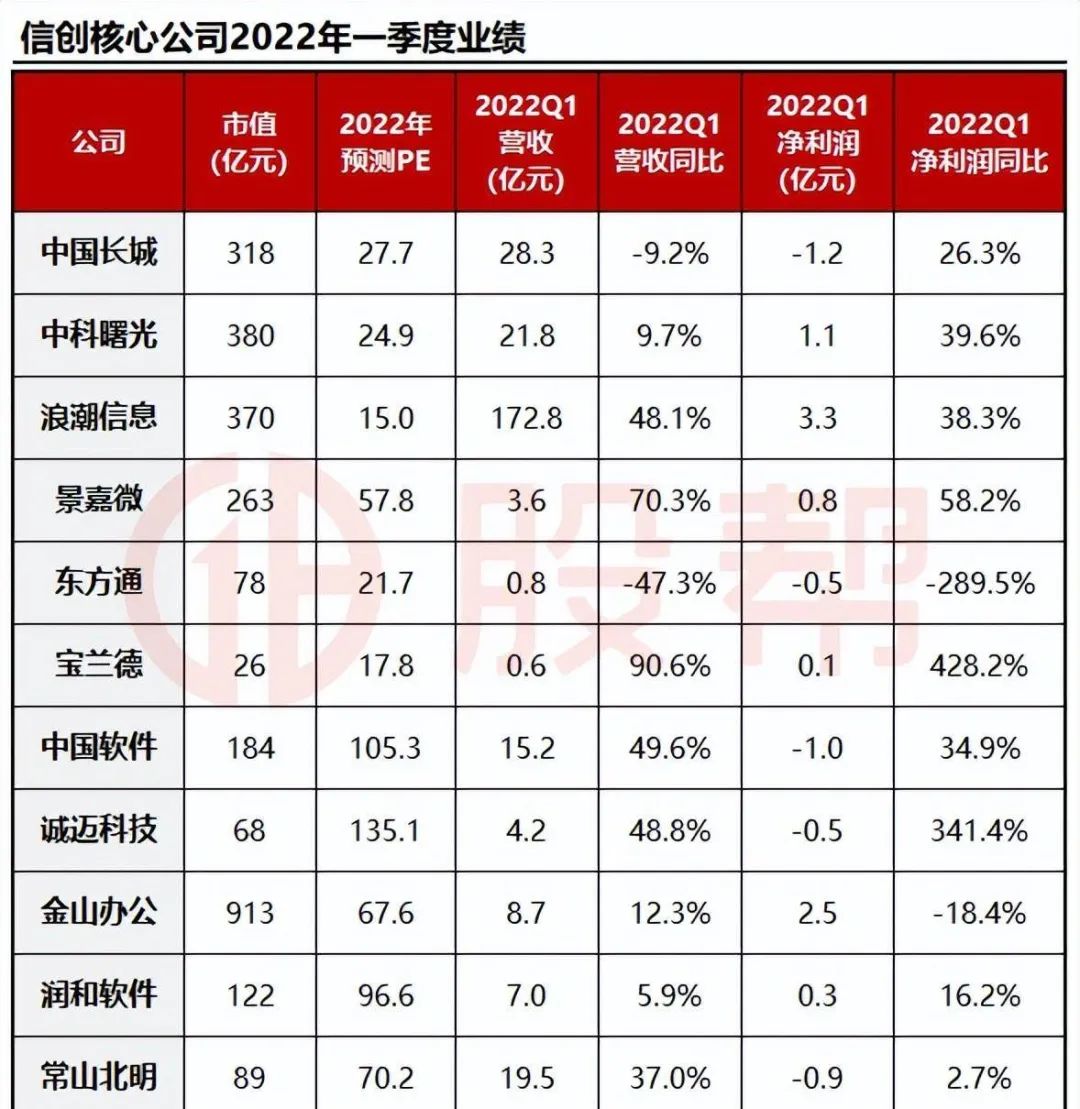 目前,信创行业核心公司均发布了2022年一季报,其中绝大部分公司在2022Q1实现了营收的高增长,但净利润表现有所分化。