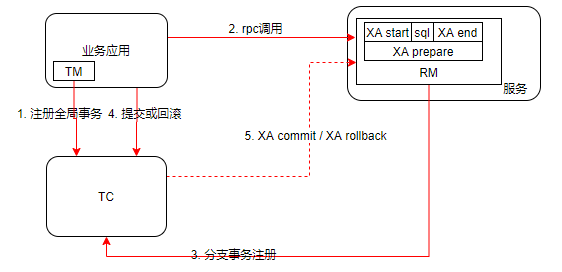 XA是基于2阶段提交协议设计的接口标准,实现了XA规范的资源管理器就可以参与XA全局事务。应用承担事务管理器TM工作,数据库承担资源管理器RM工作,TM生成全局事务id,控制RM的提交和回滚。