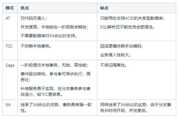 分布式事务方案没有银弹,根据自己的业务特性选择合适的模式。例如追求强一致性,可以选择AT和XA,存在和外部系统对接,可以选择Saga模式,不能依赖本地事务,可以采用TCC等等。结合各模式的优缺点进行选择。
