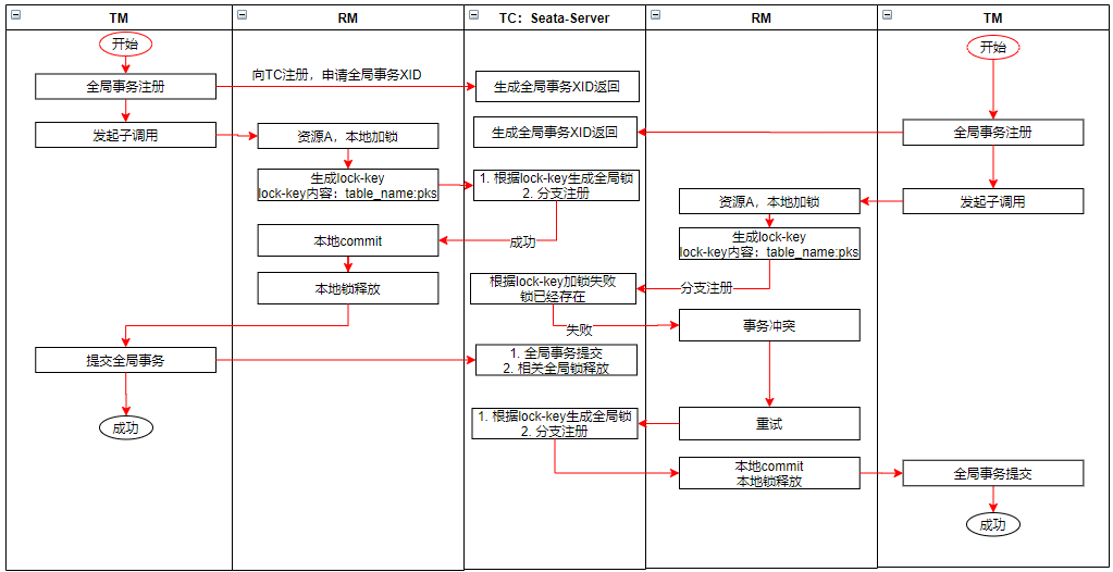 全局事务未提交,分支事务本地已经提交的情况下(假设修改了资源A),如何避免其他事务在此时修改资源A?Seata采用全局锁来实现,其流程如下: