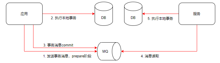 MQ事务消息:前提消息系统需要支持事务如RocketMQ,在本地事务执行前,发送事务消息prepare,本地事务执行成功,发送事务消息commit,实现分布式事务最终一致性。如果事务消息commit失败,RocketMQ会回查消息发送者确保消息正常提交,如果步骤5执行失败,进行重试,达到最终一致性。