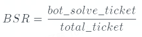 bot_solve_rate(BSR):用来评估机器人拦截的效果,机器人拦截越多的工单则会消耗越少的人力。