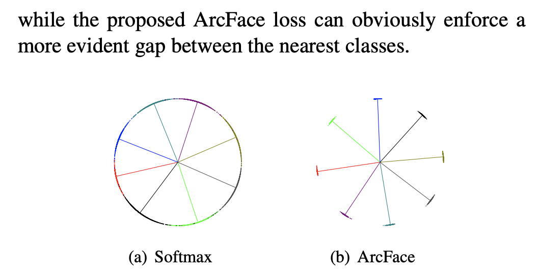 采用 Arcface 损失函数的灵感来自 SBERT 论文中的 TripletLoss,其最早被用于人脸识别中。然而,TripletLoss 依赖于三元组输入,构建模型的当时不存在这样的条件去获取数据,因此沿着思路找到了 ArcMarginLoss:最新用于人脸识别的损失函数,在人脸识别领域达到了 SOTA,在 Softmax 基础上在对各类间距离进行了加强。