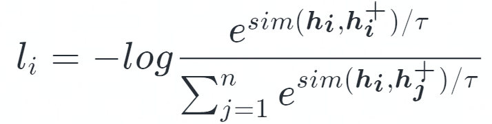 其中 sim 是余弦相似度计算,<hi,hi+>为一个 Sentence Pair。