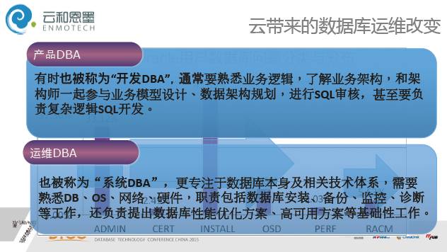 但是我们讲的产品DBA、开发DBA,我和应用在一起,了解应用逻辑,可以规划数据架构,规划业务架构,进行SQL审核,SQL优化。我们认为这些职位会非常的热门。我们在这个方向上招聘是没有限制的。大家说如果我的SQL能力特别强,我们有两位全国SQL大赛冠军,大家可以一起做一些挑战,如果这个能力很强,会随时找到非常具有诱惑力的工作。