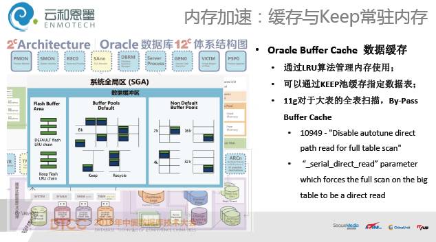 其实Oracle基于内存方面还做了很多改进,传统的内存加速,可以通过KEEP池去缓存数据,并且Oracle不断地去改进算法来提升性能,这其中包括11g的新特性Serial Table Scan。