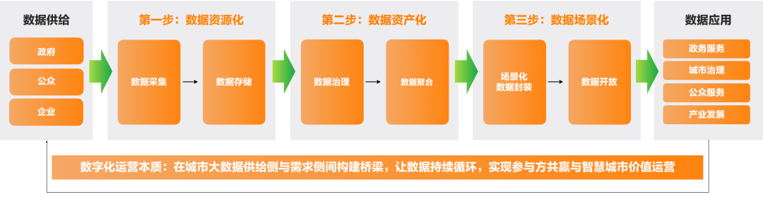 “数据资源化”指运营方在政府授权与范围限定下,通过采集、存储城市数据,为智慧城市数字化运营提供数据原料。