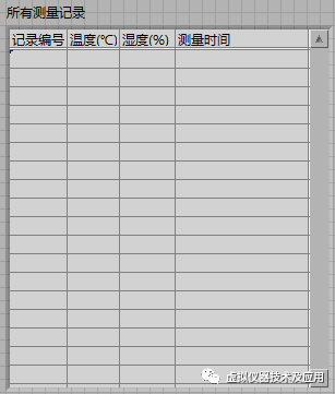 使用LabVIEW建立一个VI文件,命名为“读取一个表格的所有记录.vi”。在该VI中实现功能:读取表格threcords中的所有测量记录并显示在前面板的Table控件中。