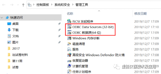 32位和64位的数据源配置方式一样,就是入口不一样。1)对Win7及以下系统:32位ODBC数据源的入口为“C:\Windows\SysWOW64”文件夹里面的“odbcad32.exe”程序,64位ODBC数据源的入口为“控制面板\系统和安全\管理工具”里面的“数据源(ODBC)”程序;2)对Win8及以上系统,32位和64位ODBC数据源的入口分别为“控制面板\系统和安全\管理工具”下面的“数据源(ODBC)(32位)”和“数据源(ODBC)(64位)”程序,如下图所示: