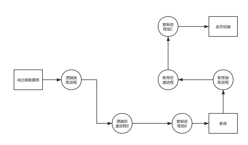 可以看到,整个同步变成了类似“级联”的方式,老目标端依然可以保持与待迁移数据的数据一致,不影响现有的应用。