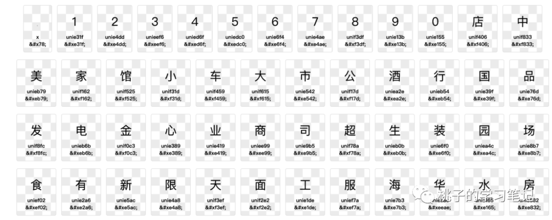 1.标准字体的name即为所绘文字的unicode16进制编码