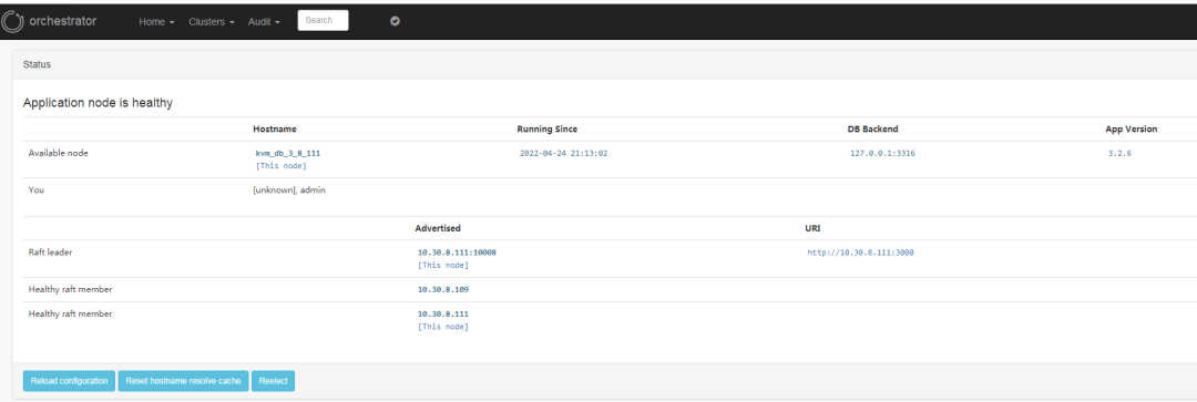也可以在Home-Status下看到当前的 Orchestrator Raft 集群的节点情况