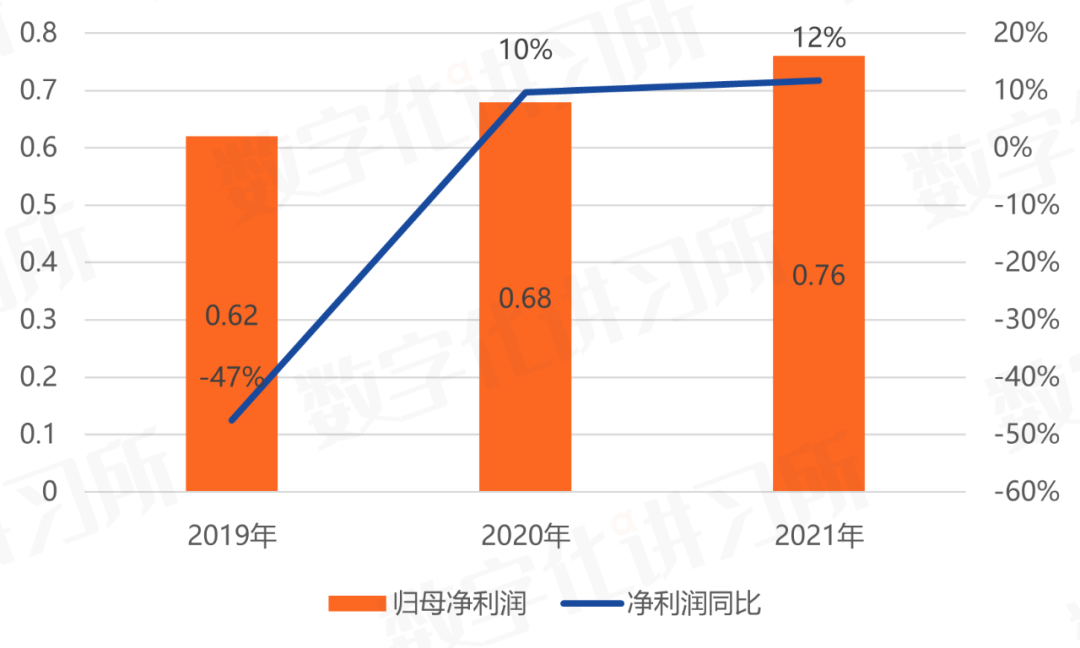 根据财报,中国软件2022年一季度实现归母净利润-1.03亿元。2019年至2021年,中国软件归母净利润分别为0.62亿元、0.68亿元及0.76 亿元,同比增长-47%、10%及12%。