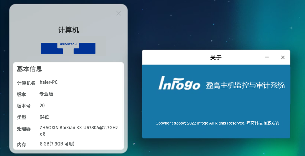 统信软件与盈高科技、兆芯合作推动制定了安全启动方面的规范,从启动时就保证了软件的安全性和存活性,不存在控制进程被中止、被卸载的情况,从而能有效管控系统内终端。