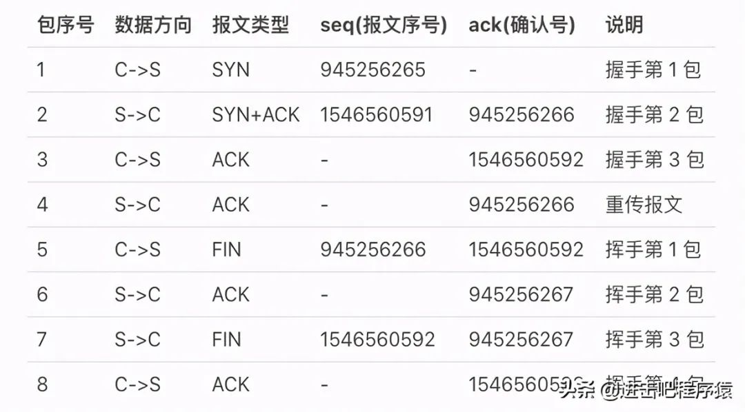 上表是图 1 中的报文简化后的情况,这里提取了一些关键数据。