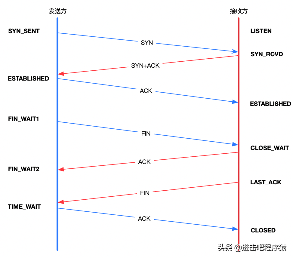 Nagle 也是 TCP 协议中常见的算法,而且面试也会经常问。Nagle 算法的目的,也是为了减少网络中 TCP 报文段的数量。(你看,为了减少网络中报文段的数量,TCP 协议搞了很多机制,包括上一节学习的 Delay ACK。)