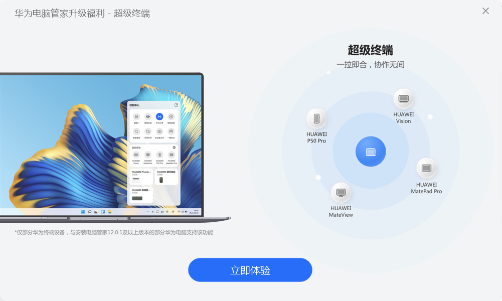 目前华为官网提供的"华为电脑管家"客户端软件最新的版本是12.0.1.20(C233