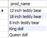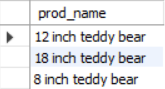 WHERE prod_name REGEXP '1[0-9] inch teddy bears?'