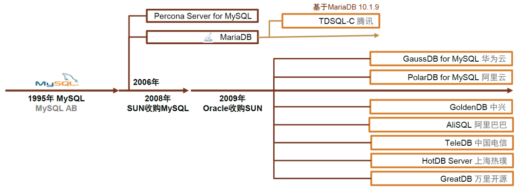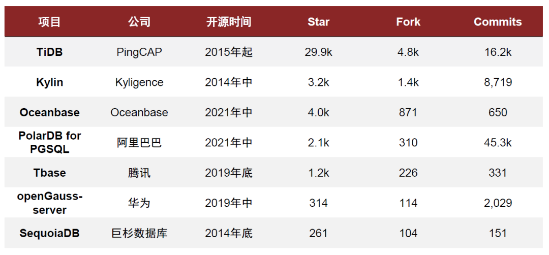 在关系型技术路径上,开源的力量不容忽视,PostgreSQL与MySQL在全球范围内已然延展出两大产品家族。我们在《数据库系列报告开篇:技术路径复盘及展望》中提出开源思潮的流行影响数据库技术架构的迭代。在全球范围内,PostgreSQL与MySQL两大顶级开源关系型数据库项目深刻地影响着厂家的技术路线选择,并已然成长延伸出两大产品家族。