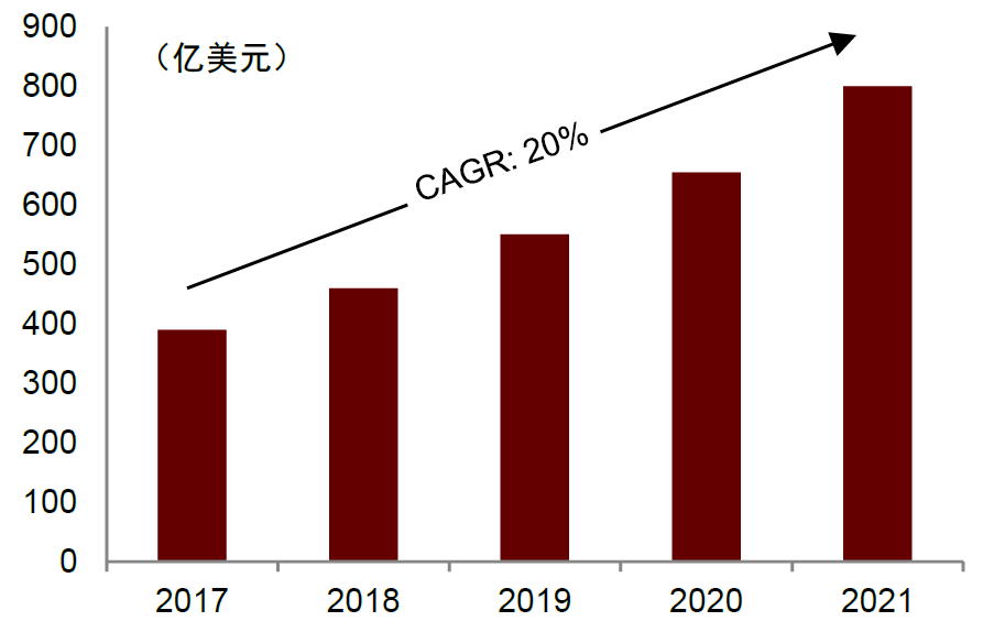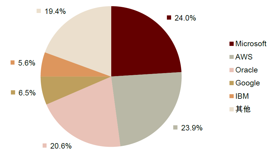 全球数据库市场处在高速发展过程中,目前Microsoft、AWS、Oracle占据大半市场。根据Gartner的数据,从2017年到2021年,全球数据库市场以20%的年均复合增速维持高速增长;2021年市场规模接近800亿美元,同比增速超过22%。从格局来看,传统数据库龙头Oracle与全球云巨头Microsoft、AWS市占率位列行业前三。我们观察到自2018年以来,Oracle市占率略有下滑,云成为变革市场格局的重要力量。