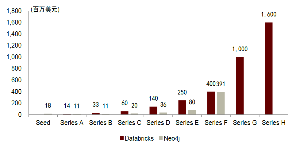 头部NoSQL、大数据厂商收入增速快且备受资本市场关注。NoSQL、大数据领域的上市公司中,Cloudera营收规模最大,但近年增长放缓,而MongoDB、Elastic增速均在50%左右,Snowflake更是实现多年翻倍增长。资本市场高度关注新技术趋势厂商,如近年炙手可热的湖仓一体公司Databricks、图数据库项目Neo4j。