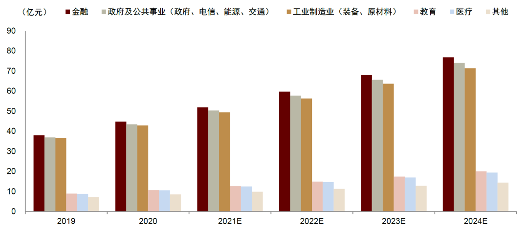 图表:按照下游客户所在行业分类的关系型数据库市场规模,2019-2024e