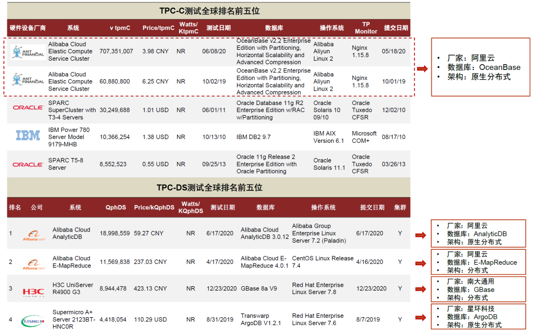 图表:从第三方测试结果也可以看到,部分国产原生分布式厂家技术实力已处在世界前列