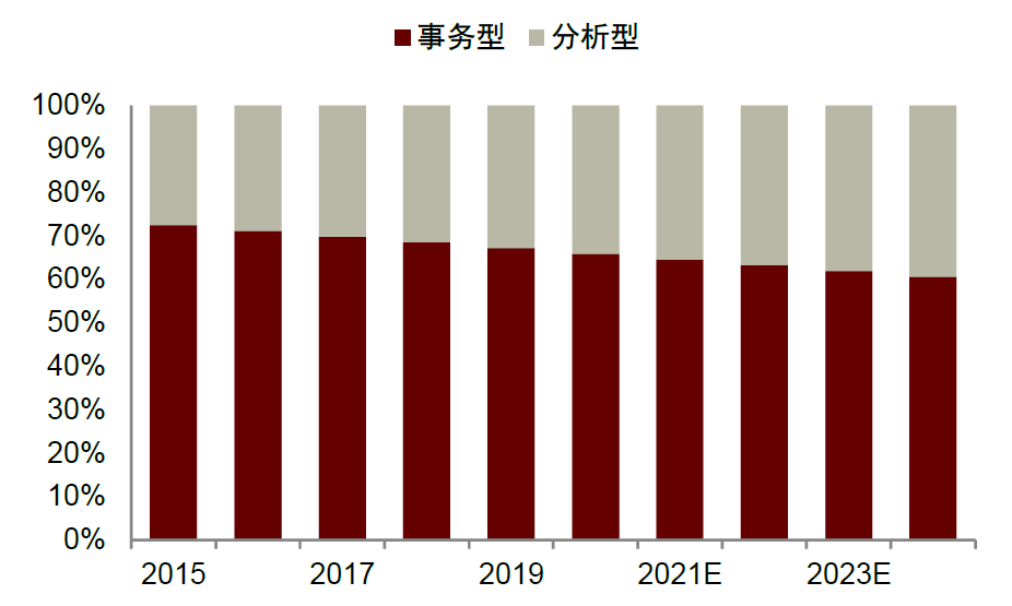 图表:分析型数据库占比逐年提升,我们认为云架构将成为重要推力
