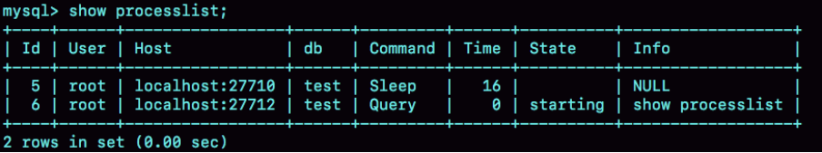 连接完成后,如果你没有后续的动作,这个连接就处于空闲状态,你可以在showprocesslist命令中看到它。文本中这个图是showprocesslist的结果,其中的Command列显示为“Sleep”的这一行,就表示现在系统里面有一个空闲连接。