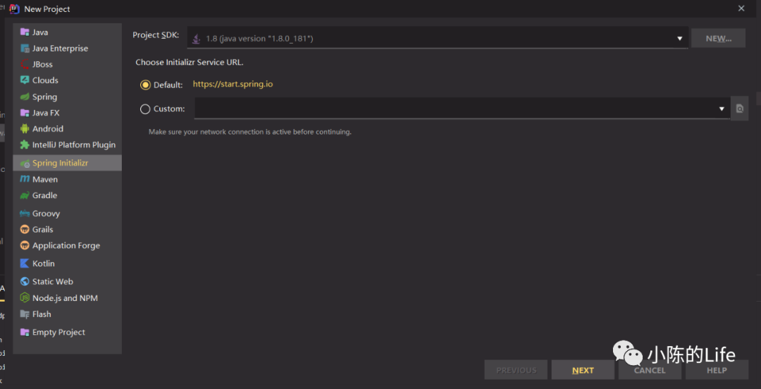首先新建一个项目,选中Spring Initializr并点击下一步