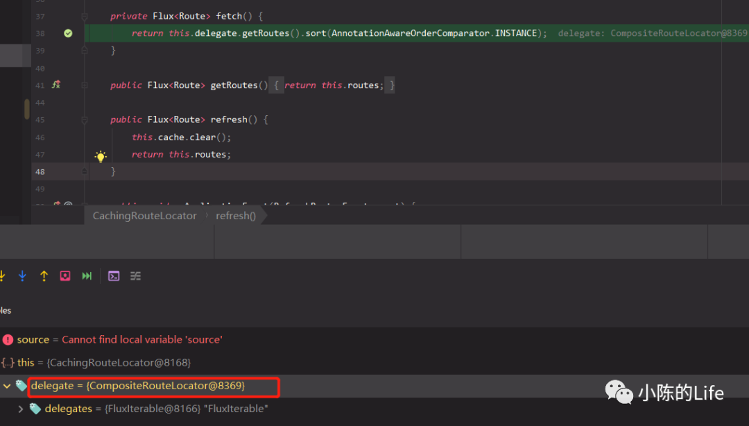 用最后的话分析就是CachingRouteLocator它包装了CompositeRouteLocator,而CompositeRouteLocator则组合了RouteDefinitionRouteLocator。而CachingRouteLocator集成了RefreshRoutesEvent接口,所以之后的刷新请求就会走到CachingRouteLocator中处理。